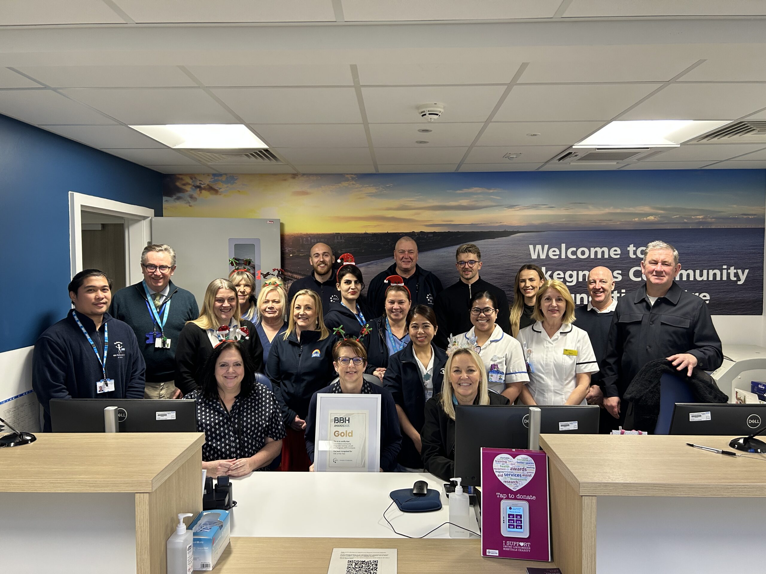 The team at Skegness CDC, with colleagues from our building partners, MTX Contracts, receiving their ‘gold’ award from the Building Better Healthcare Awards.