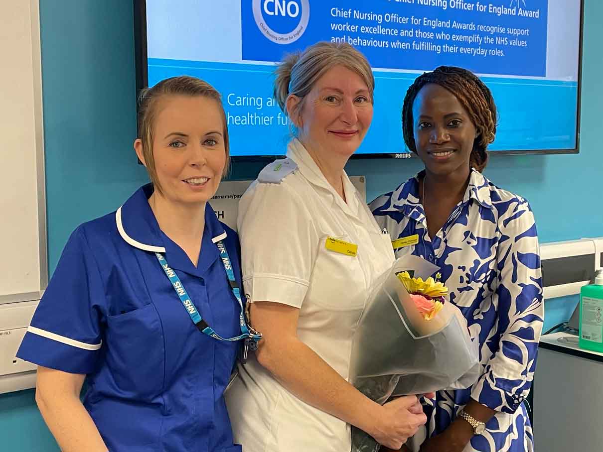 From L-R: Victoria Bell, Deputy Sister; Carole Jackson, Cancer Care Co-ordinator and Nerea Odongo, Group Chief Nurse