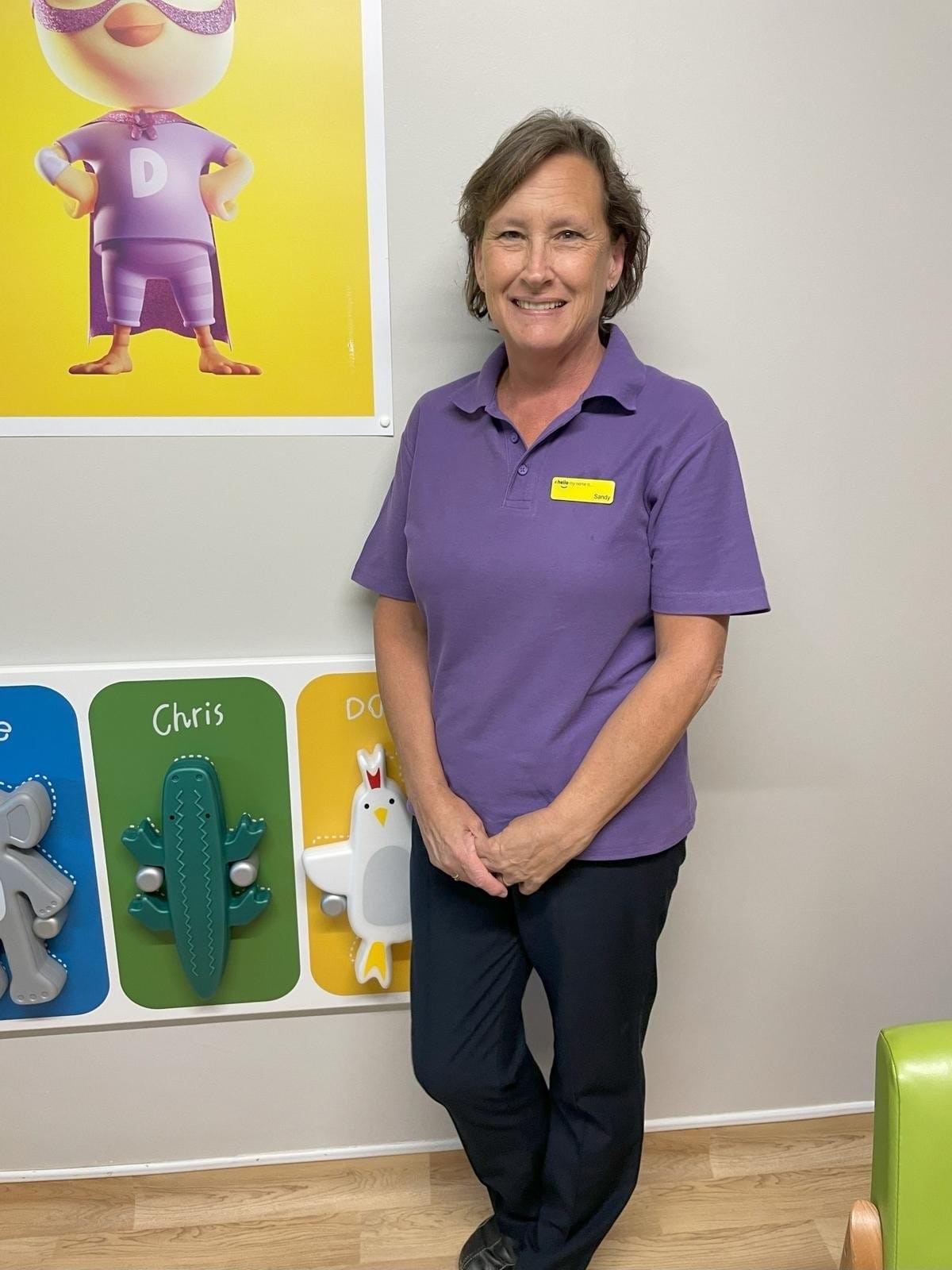 Sandy, standing smiling at the camera