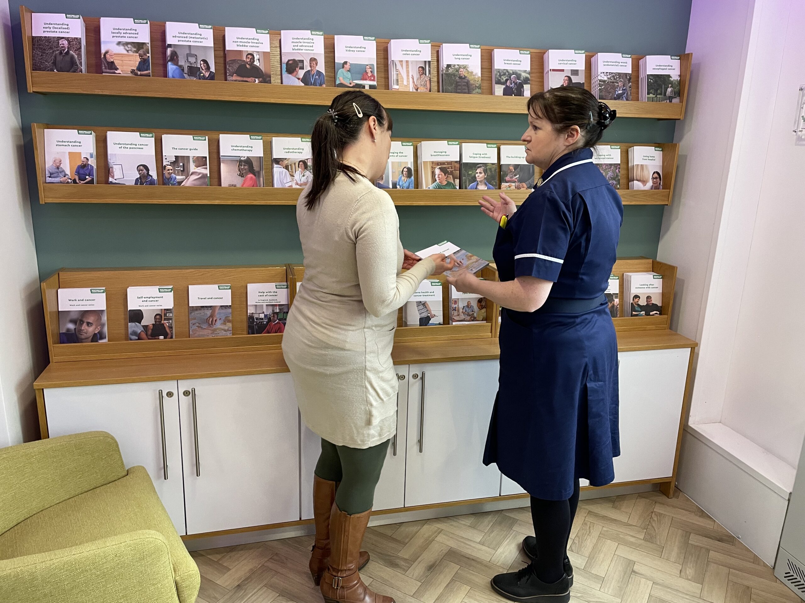 A lady getting support from Macmillan